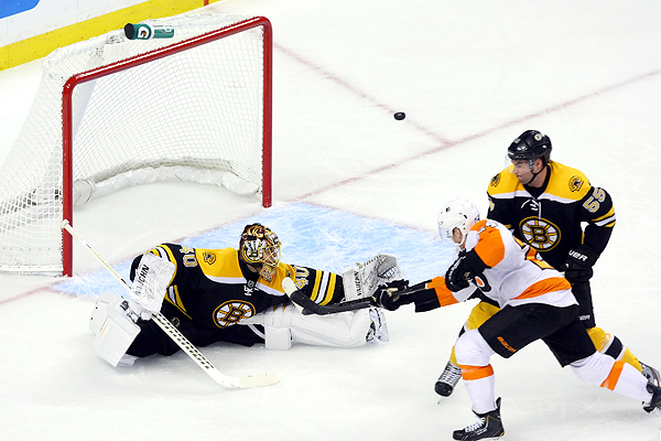 Bruins forward Tyler Seguin saved a shutout for Rask -- literally -- in the waning minutes of regulation. The Bruins were on a power play when the Flyers created a short-handed opportunity. Rask came out of the net to charge a loose puck, but Philadelphia gained control and shot at the open net. Seguin sprawled out on the ice to make the save and preserve the shutout.