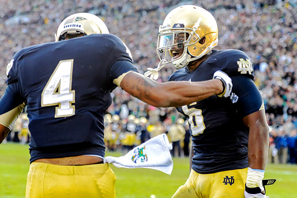Robin Alam/Icon SMIGeorge Atkinson III (4) celebrates with Theo Riddick after scoring Notre Dame's winning TD against BYU.