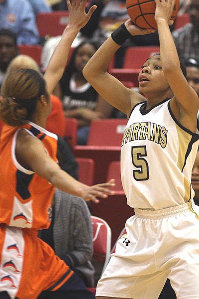 Jasmine Matthews scored 21 points and grabbed seven rebounds for the Spartans.