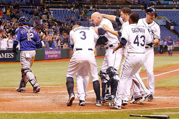 The Rangers still had two chances to make the outcome end in their favor. They scored in the top of the 11th, when Elvis Andrus was hit by a pitch and, with two outs, Adrian Beltre lined a single into right field. Rays outfielder Wil Myers was slow getting to the ball and Rangers third-base coach Gary Pettis alertly sent the hard-charging Andrus home. He slid in safely for a 3-2 lead.