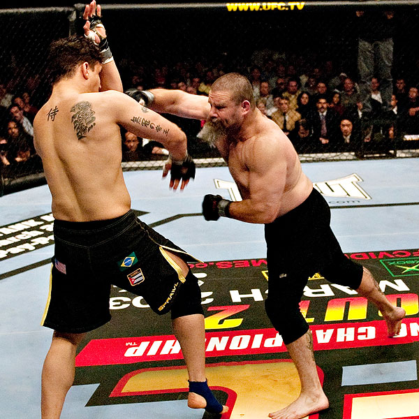Mir looks slow in the cage these days, even with the improved physical conditioning he’s been receiving under the guidance of Greg Jackson in Albuquerque, N.M. And Mir deserves credit for taking the extra step to train in Albuqurque, spending weeks away from his family in Las Vegas.