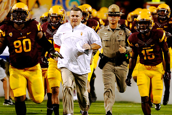 Matt Fortuna: Arizona State is a newcomer to the Pac-12 portion of Notre Dame's schedule this year, Kevin. The Sun Devils have looked great against USC, not so great against Stanford and, well, fortuitous in their win over Wisconsin. They put up 62 points last week against what was believed to be a good Trojans defense, getting Lane Kiffin fired in the process. So I guess we'll start there, given Notre Dame's defensive struggles so far this season: What makes Todd Graham's unit so explosive offensively, and what do the Irish need to really keep an eye on Saturday to keep the points down?