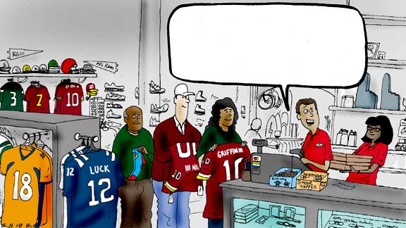 Earlier today, we posted a blank cartoon, and readers offered their captions. Our favorite was by commenter RickG033. Check your ESPN.com profile message center for an email.