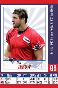 The company has produced 1 million stickers of new Patriots quarterback Tim Tebow, who happened to play with Hernandez at the University of Florida, to fill the spot. The Tebow replacement stickers will be handed out at events or given to customers who received Hernandez in a pack and send a self-addressed stamped envelope to the company. The company is also allowing sticker collectors to download the Tebow sticker image from its website.