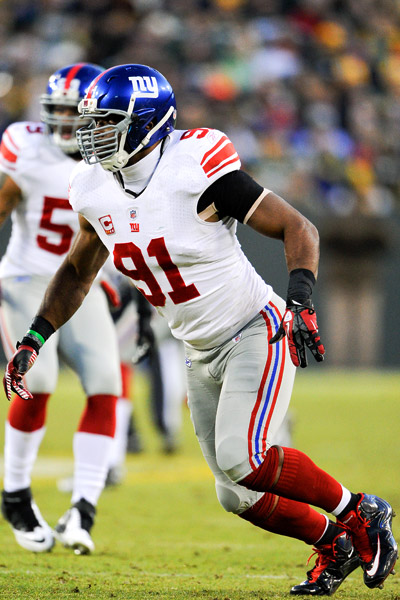 Tedy: I don't know if there is any drop-off from 2007. The way Jason Pierre-Paul has played, he's been a force like Michael Strahan was. I know on the depth chart, Justin Tuck is listed as the left defensive end, but really it should just be DL, in terms of D-lineman. They'll line him up over anyone -- guard, tackle, it doesn't matter. The unique things he can do from that position is not just beat a player one on one, but run "games" with either the nose tackle, or another interior defensive lineman, or the outside defensive end.
