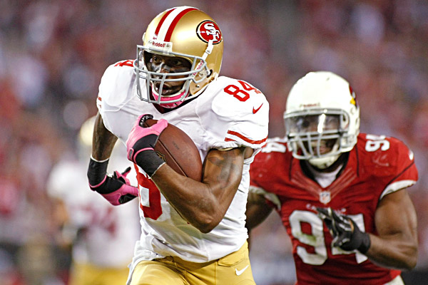 Tedy: Yes, and if I'm the Patriots game-planning, I want to put Kaepernick in passing situations, especially outside the numbers. I wouldn't want to give him the running backs in the middle of the field, or the tight-end throws that make it easy on a quarterback. I want to make it tough on him, and I think having Vernon Davis and Delanie Walker, those are options you want to take away. You want him throwing to Crabtree, Manningham and Moss outside the numbers.
