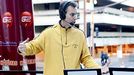 Wacky FM DJ Fisch challenged Colin to a 40-yard dash -- and won as Colin pulled up lame. Photo Gallery »