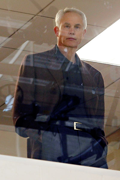 I caught Kupchak's eye briefly as he stood stiffly in his second-floor office, looking out at the court from behind a Plexiglas window. His arms were crossed, and his jaw was set firmly. There was no humor in the room.