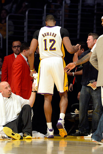 Howard was among the first players to emerge from the locker room when the game was over on Sunday night. Wisely, he'd stuck around after he was ejected midway through the third quarter of the Lakers' season-ending loss to the San Antonio Spurs for arguing with a referee.