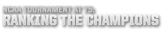 It makes sense then, as the NCAA celebrates its 75th year of madness, that there is a place to not just debate the best champion (my starting five is better than yours) but also to rank the snapshots in time and the players who created them.