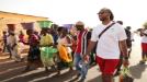 Larry Fitzgerald visits a women's garden project next to the river in Samecouta, Senegal.