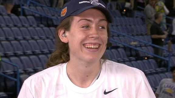 From the moment she took the microphone after being announced as the Final Four's most outstanding player and good-naturedly told her chatty teammates to "shut up" on national television, to later when she stuck out her tongue at the media as she left the postgame news conference and then gave coach Geno Auriemma an awkward hug as she departed.
